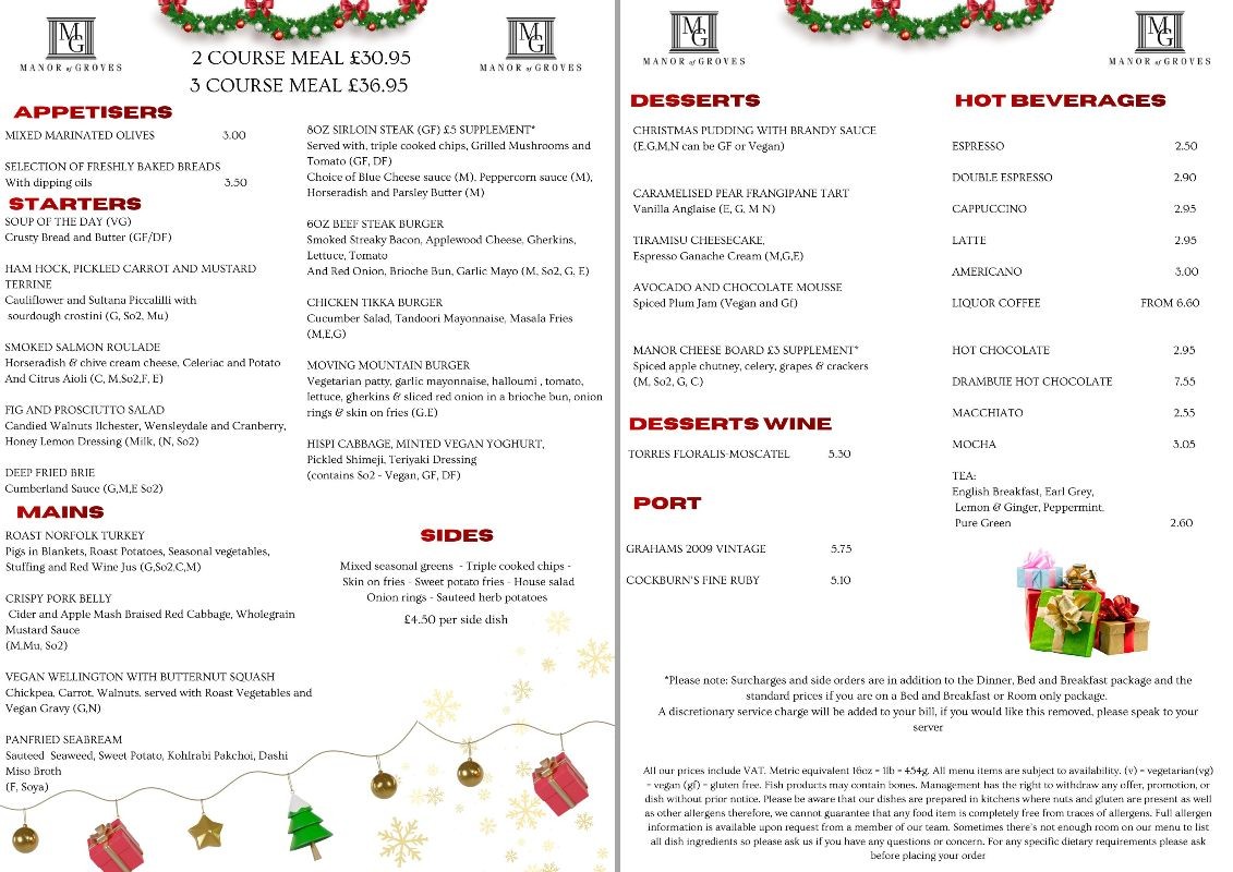 La Brasserie is where you will find an inspirational menu, expertly created by our Executive Chef and his team. His philosophy on food is quite simple… “I aim to create a memorable dining experience at Manor of Groves, and my team and I do this is by producing appetising dishes of the highest standard. In my experience, if you use good, honest, fresh ingredients that are locally sourced you will create delicious plates of food” Along with carefully selected fresh local produce, many of the fruits, vegetables and herbs used in the mouth-watering dishes have been personally grown and tended by Chef and his team.